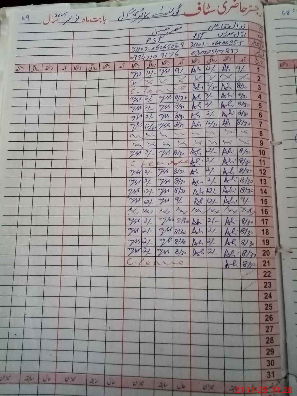 | CNIC | Full Name | Designation | R/C | Absence During Last Calender Month |