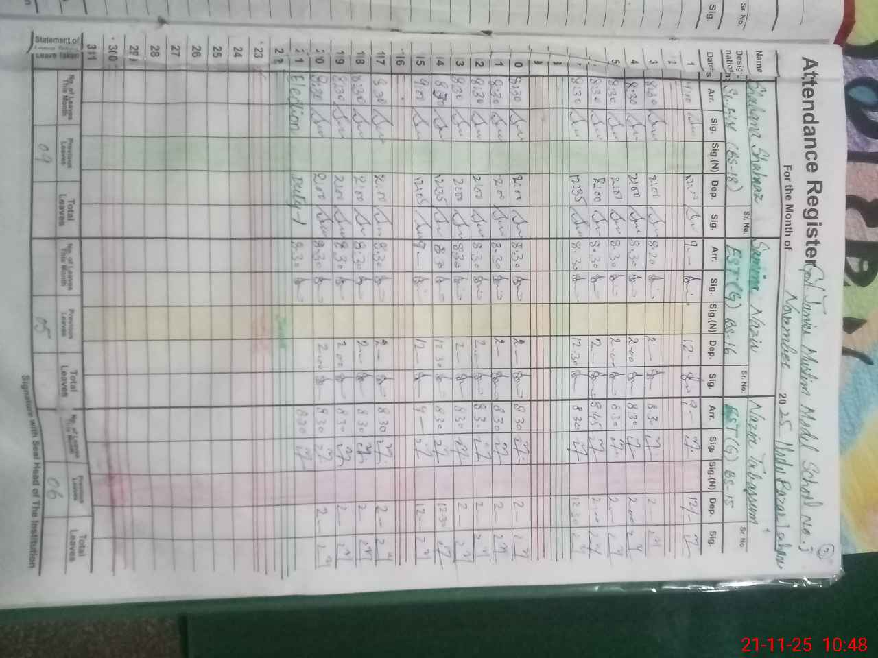 | 35**** | Mu**** Bu**** | Regular | 2 | 3 | 0 | 0 | 0 | 0 | 0 | 0 | 2 | Exam Duty | |