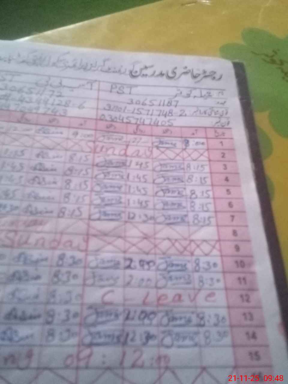 | CNIC | Full Name | Designation | R/C | Absence During Last Calender Month |