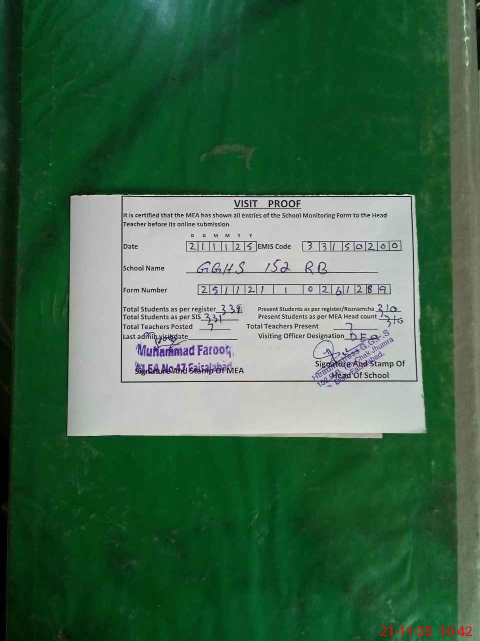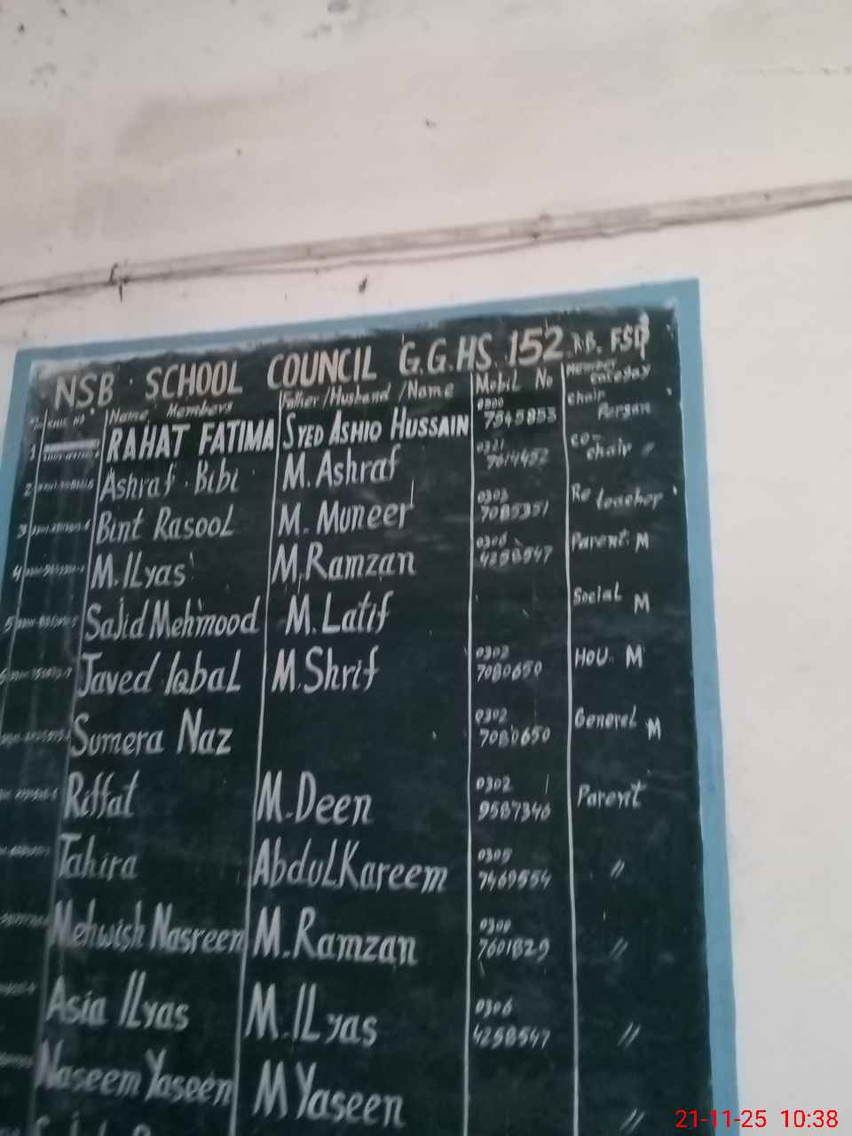 | EMIS Code: 33150200 | Name of School: GGHS CHAK NO 152 RB | |||
