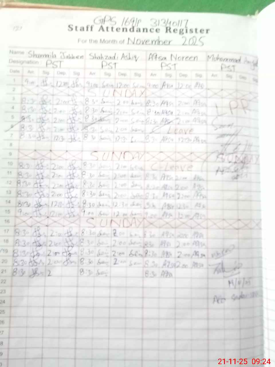 | Name: Sh**** Designation: (School Headmaster's/Headmistress's) PST Phone/Cell Number: 03**** |