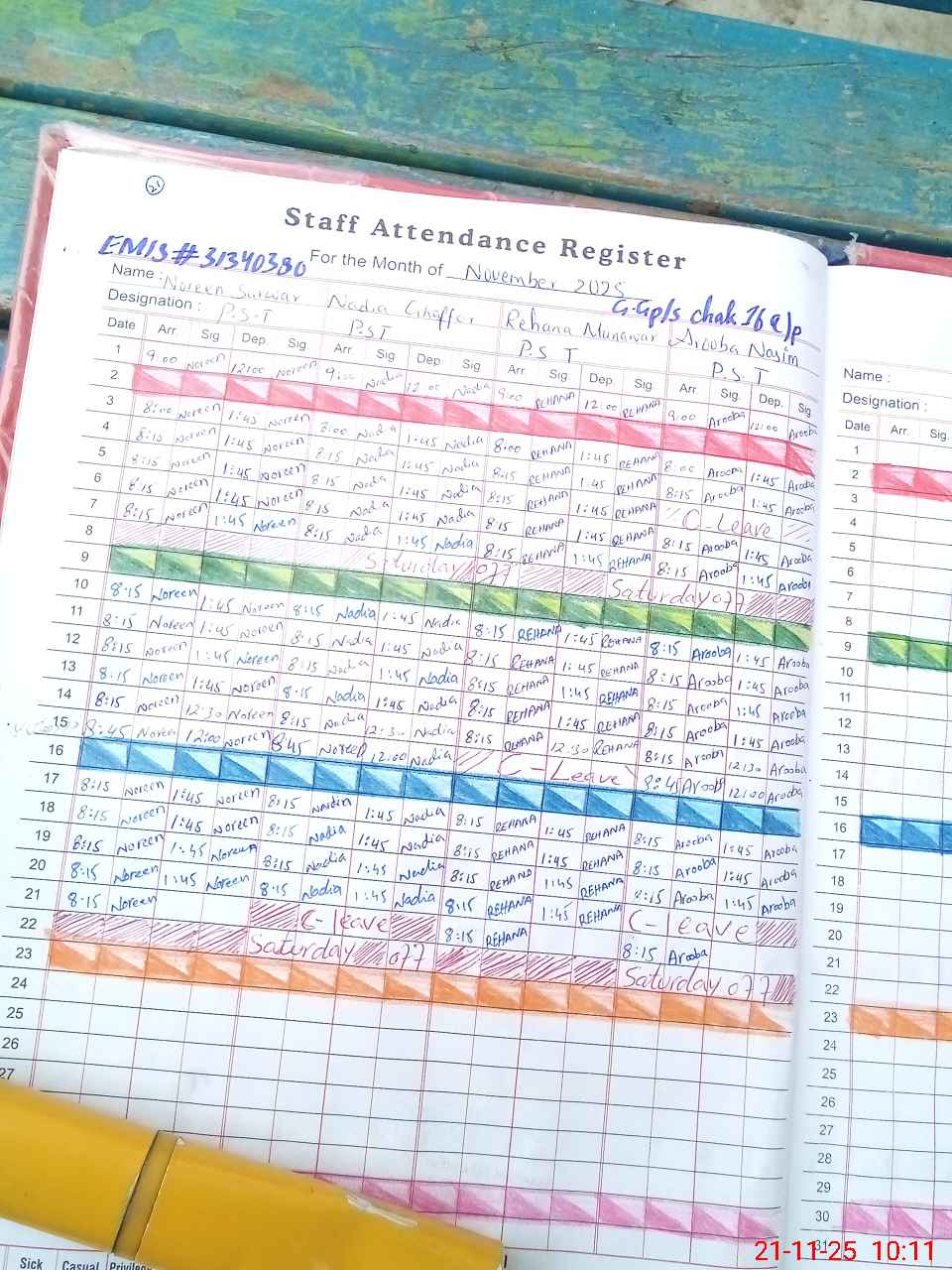 | 31**** | Na**** Gh**** | PST | Regular | 3 | 0 | 0 | 0 | 0 | 0 | 0 | 0 | 3 | Casual |