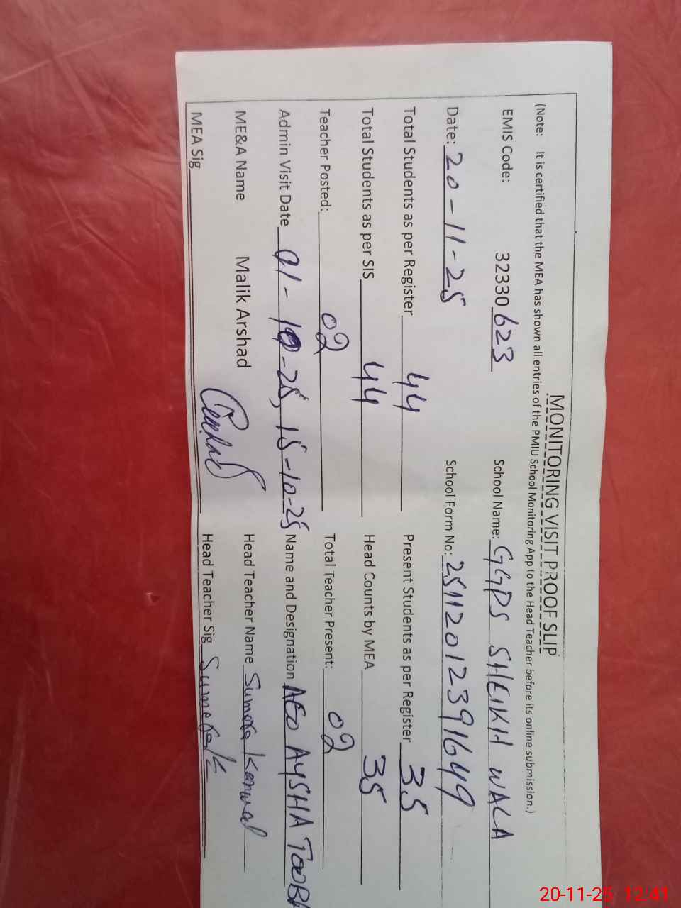 | EMIS Code: 32330623 | Name of School: GGPS SHEIKH WALA | |||