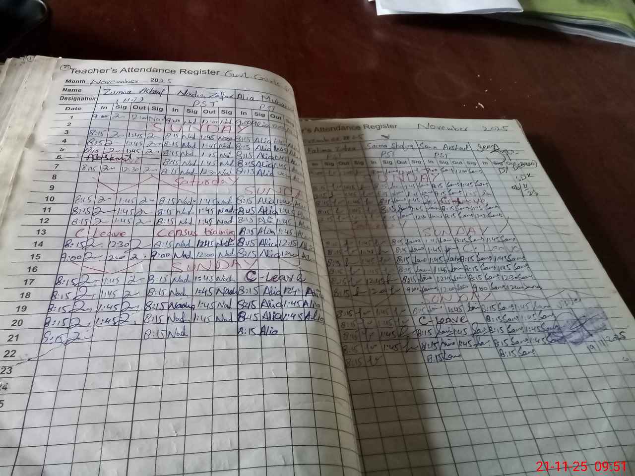 | CNIC | Full Name | Designation | R/C | Absence During Last Calender Month |