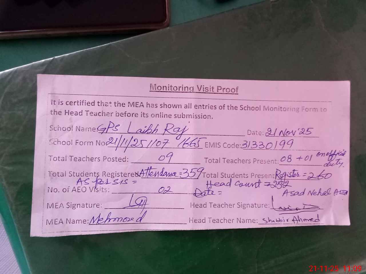| EMIS Code: 31330199 | Name of School: GPS KOT LAIKH RAJ | |||