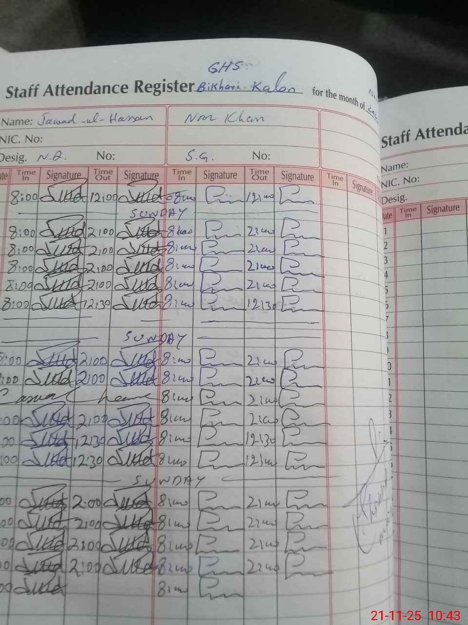 | CNIC | Full Name | Designation | R/C | Absence During Last Calender Month |