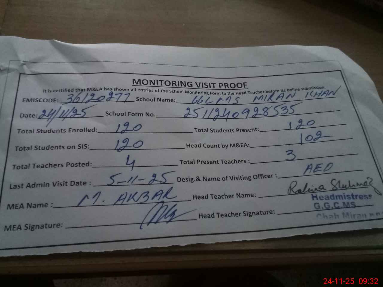 | EMIS Code: 36120277 | Name of School: GGCMS CHAH MIRAN KHAN | |||