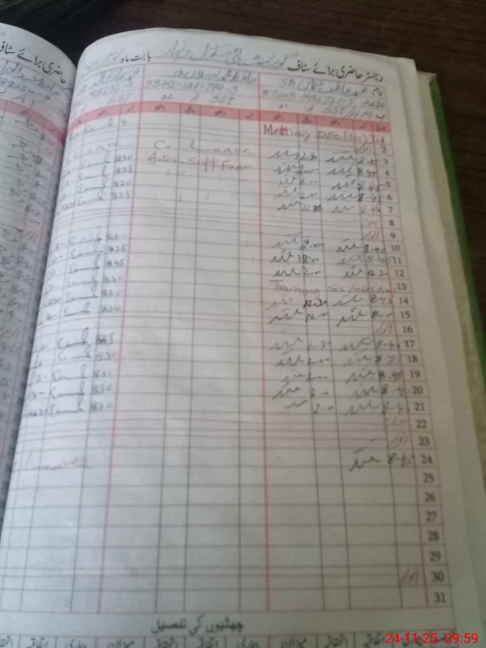 | CNIC | Full Name | Designation | R/C | Absence During Last Calender Month |