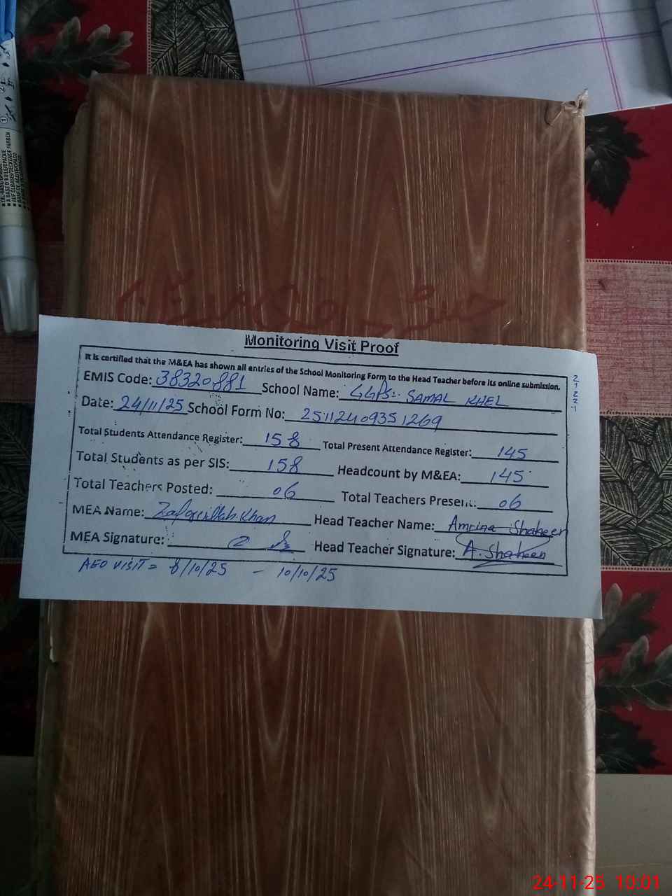 | EMIS Code: 38320881 | Name of School: GGPS SAMAL KHEL | |||