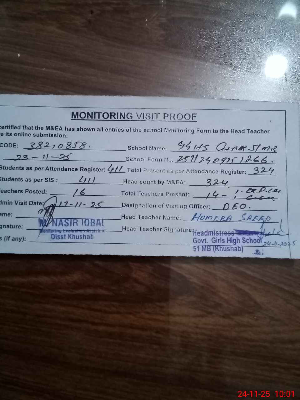 | EMIS Code: 38210858 | Name of School: GGHS CHAK NO 51 MB | |||