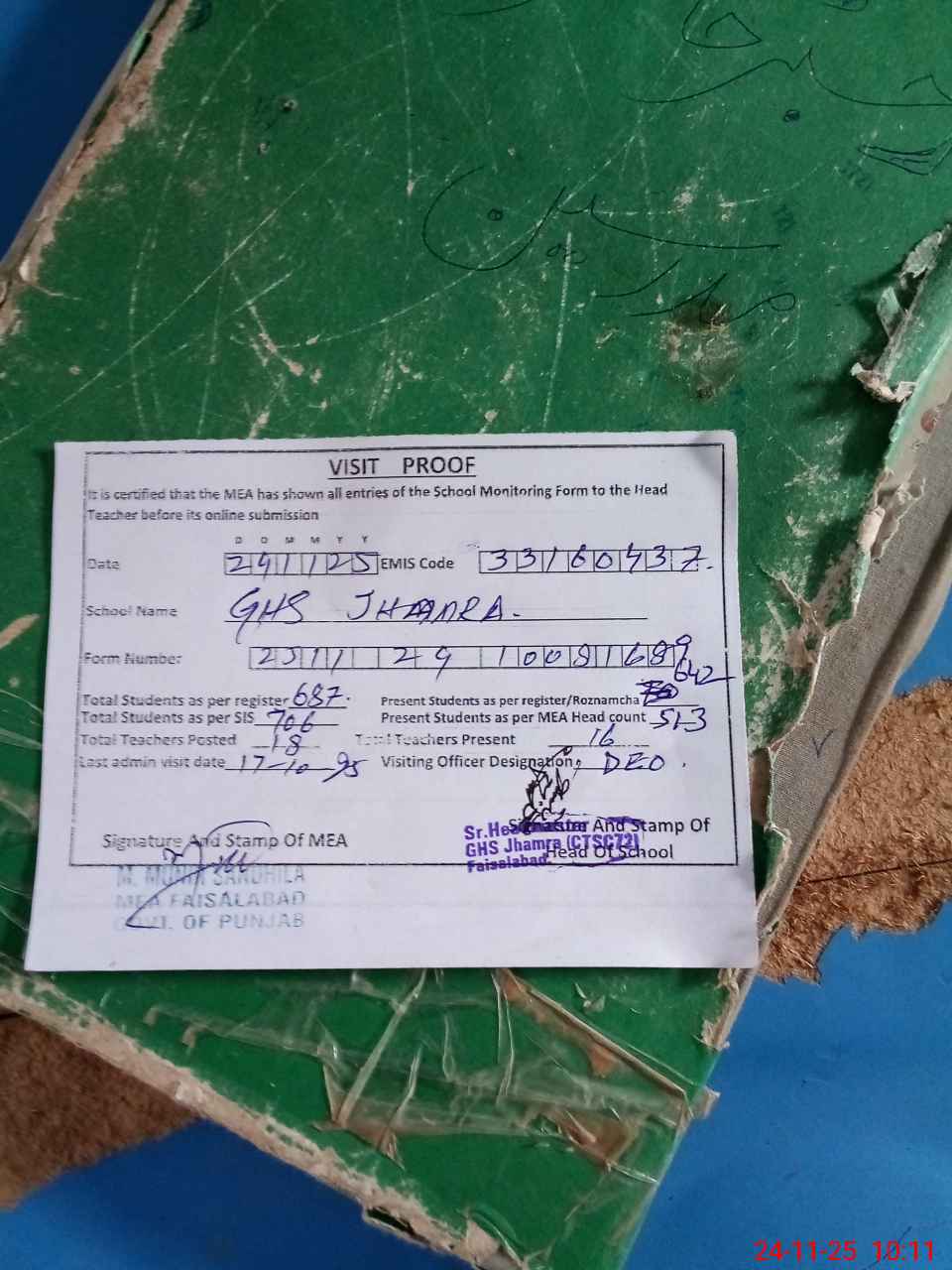 | EMIS Code: 33160437 | Name of School: GHS JHAMRA TANDLIANWALA FSD | |||