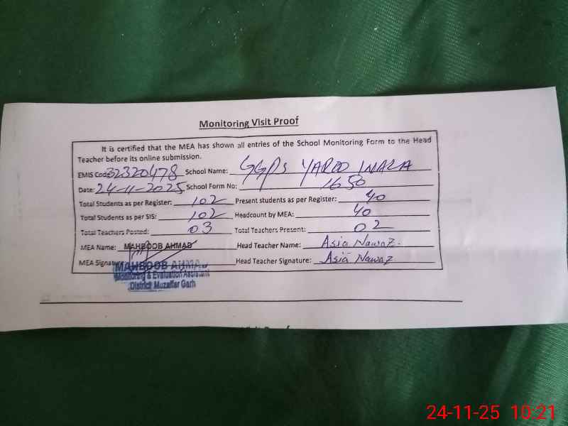 | EMIS Code: 32320478 | Name of School: GGPS YAROO WALA | |||