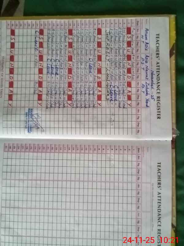 | CNIC | Full Name | Designation | R/C | Absence During Last Calender Month |