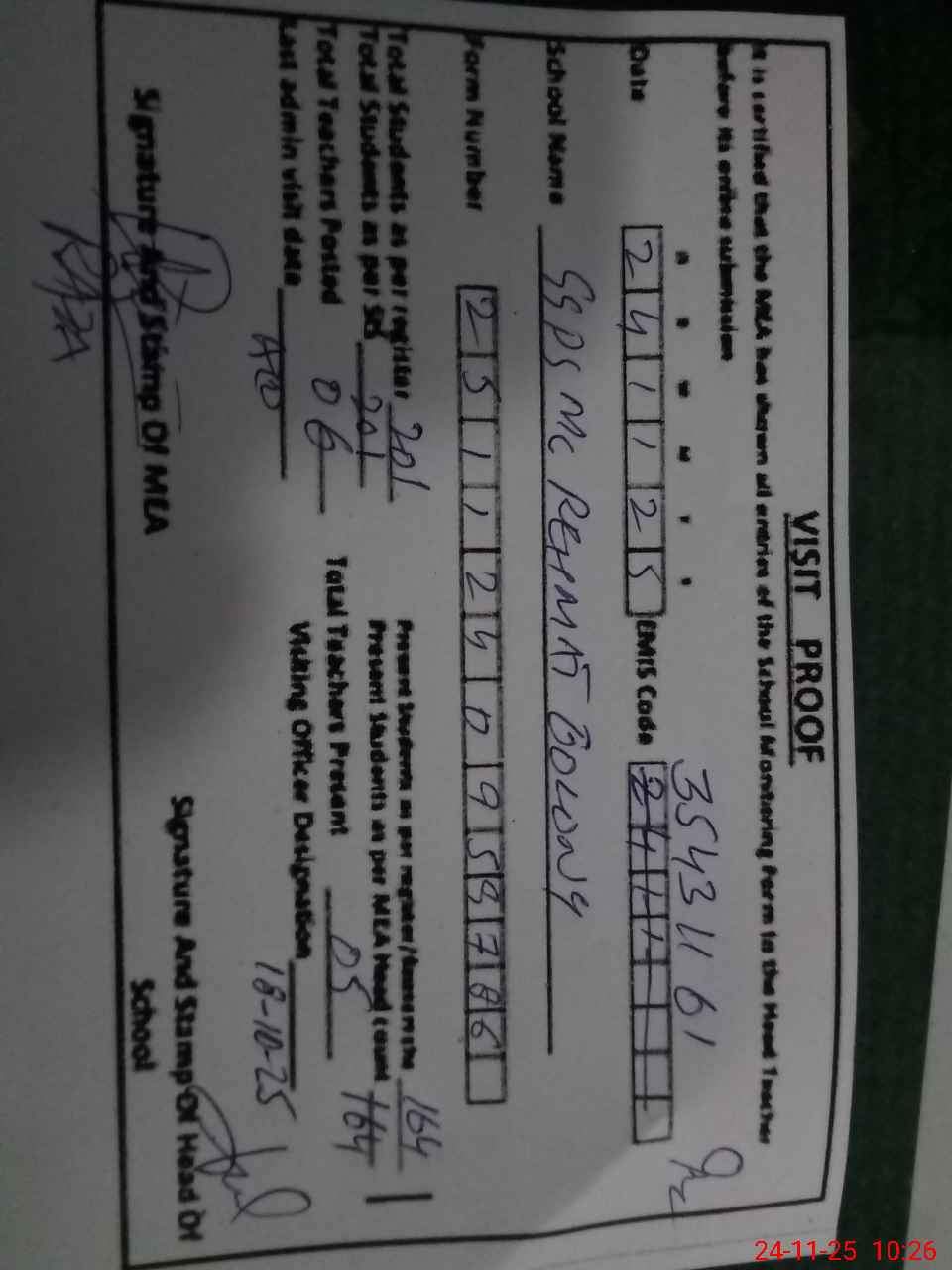 | Certified that this School was Inspected by the Undersigned MEA/DMO Today and the Information Stated Above is as Per Record. | |||||