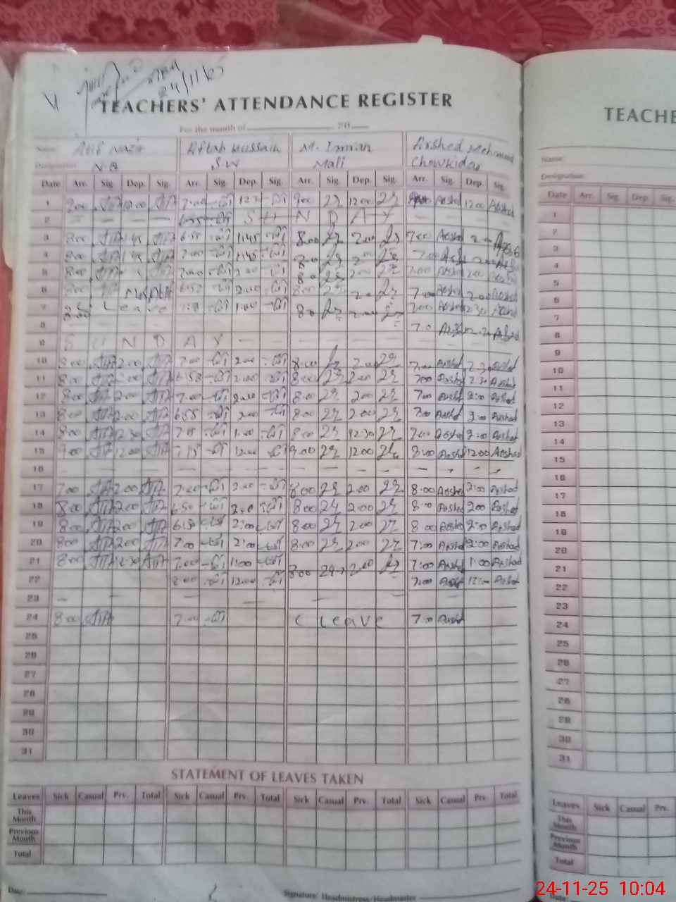 | 37**** | Na**** Kh**** | Regular | 0 | 0 | 31 | 0 | 0 | 0 | 0 | 0 | 0 | Absent (Un-Authorized) | |