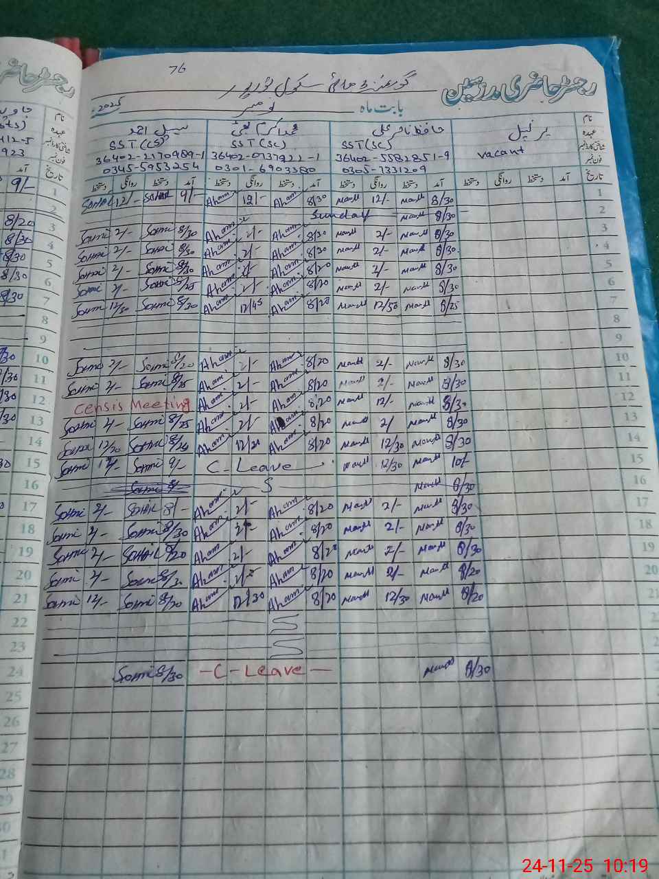 | Name: Ha**** Na**** Al**** Designation: (School Headmaster's/Headmistress's) SST Science Phone/Cell Number: 03**** |