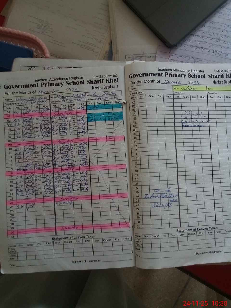 | Attendance Register | Head Teacher | MEA with School | Visit Proof |