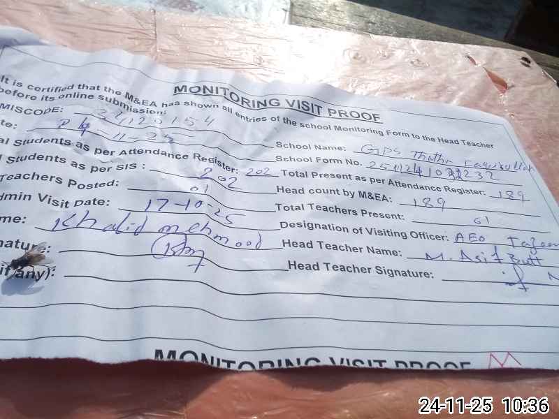 | EMIS Code: 34120154 | Name of School: GPS THATHA FIQIR ULLAH | |||