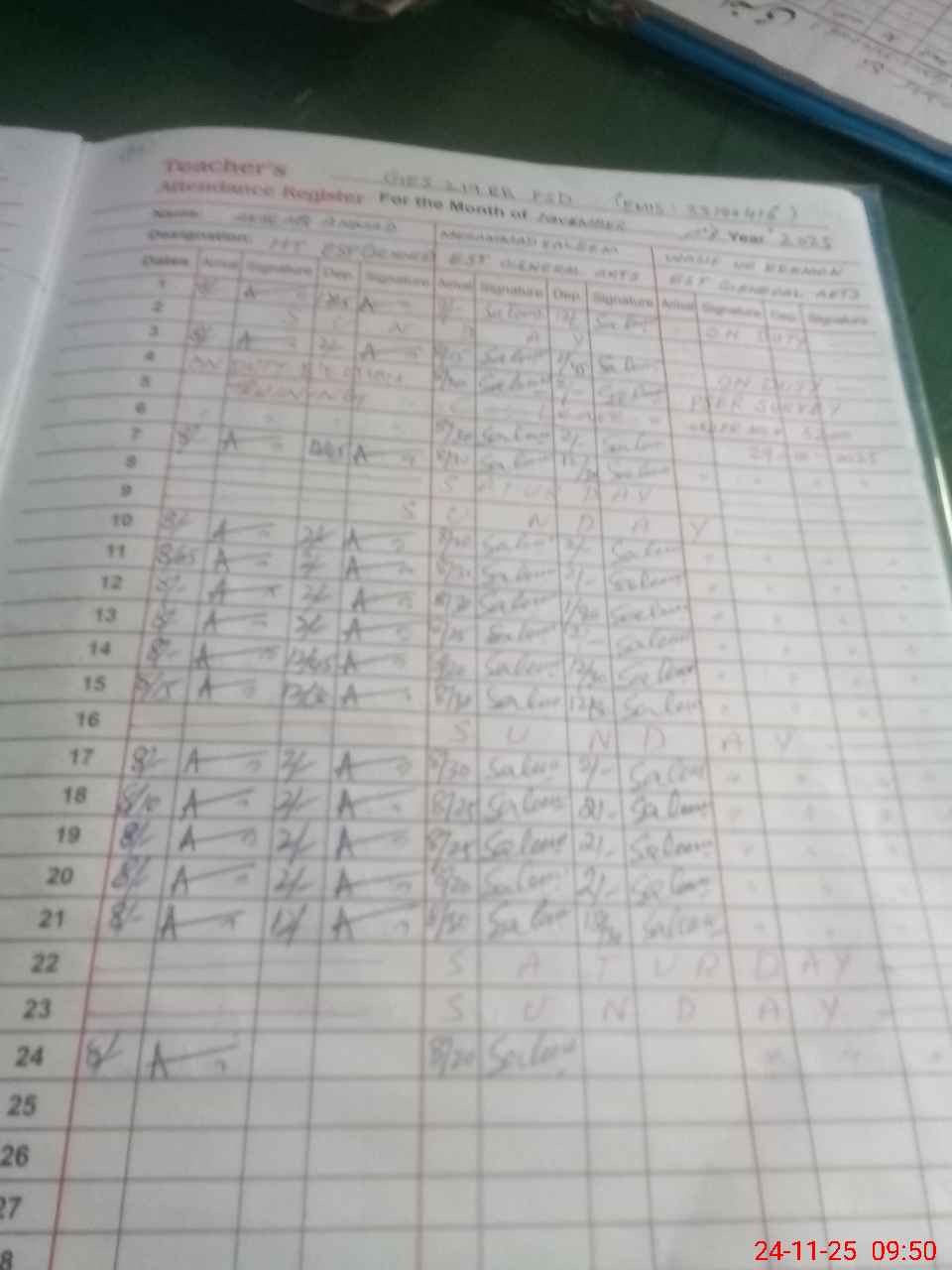 | Monitoring Date: 24-11-2025 | Start Time: 24-11-2025 09:18 AM | End Time: 24-11-2025 09:53 AM | Name of MEA: KA**** AL**** | |