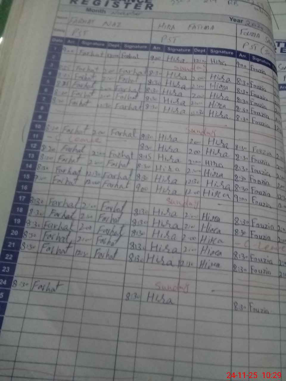 | CNIC | Full Name | Designation | R/C | Absence During Last Calender Month |