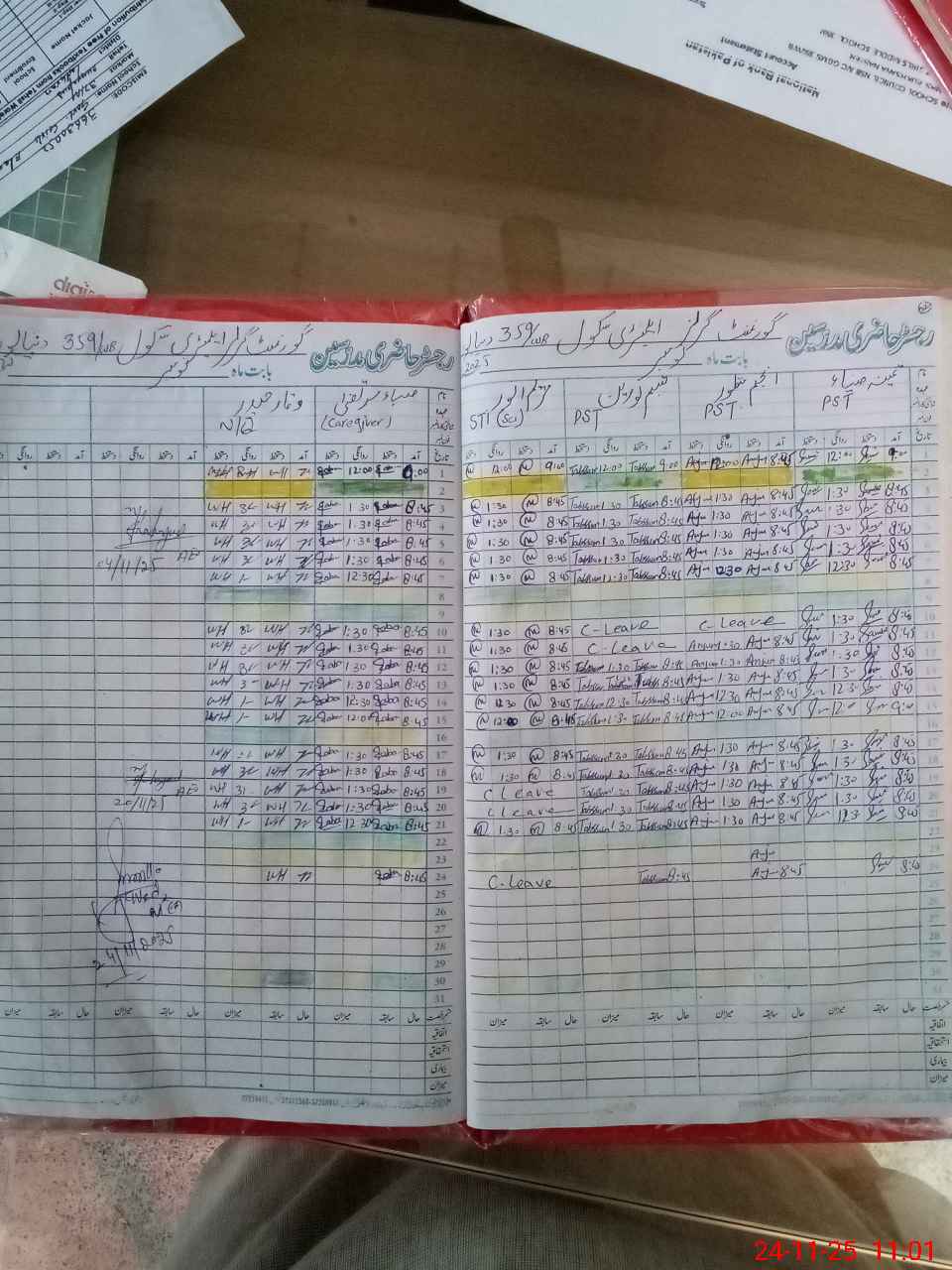 | CNIC | Full Name | Designation | R/C | Absence During Last Calender Month |
