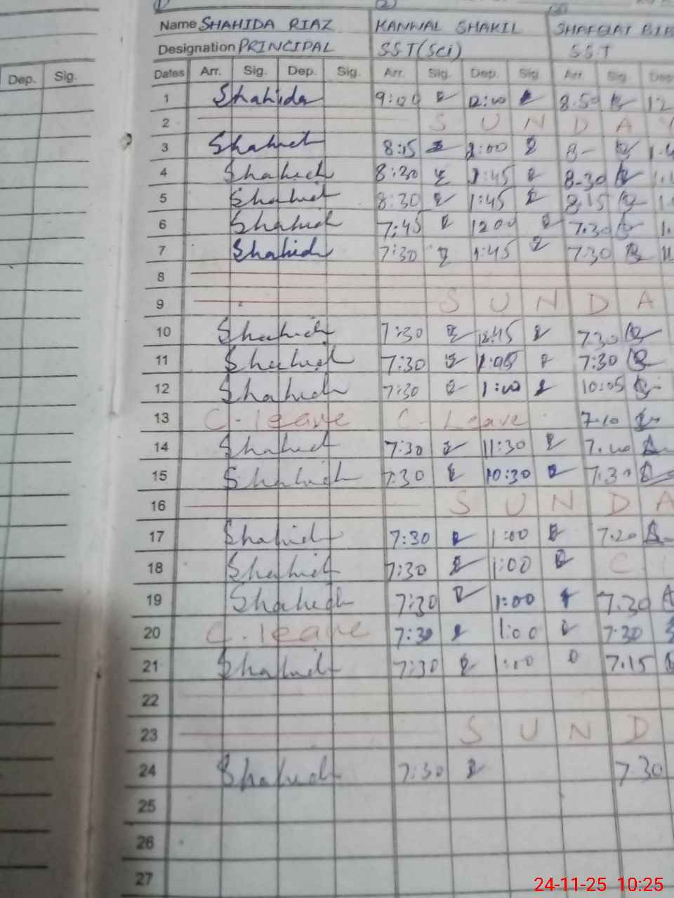 | CNIC | Full Name | Designation | R/C | Absence during last cal. month |