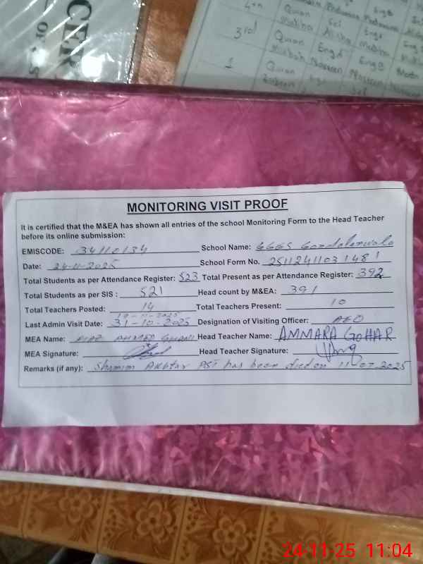 | EMIS Code: 34110134 | Name of School: GGES GONDALAN WALA | |||