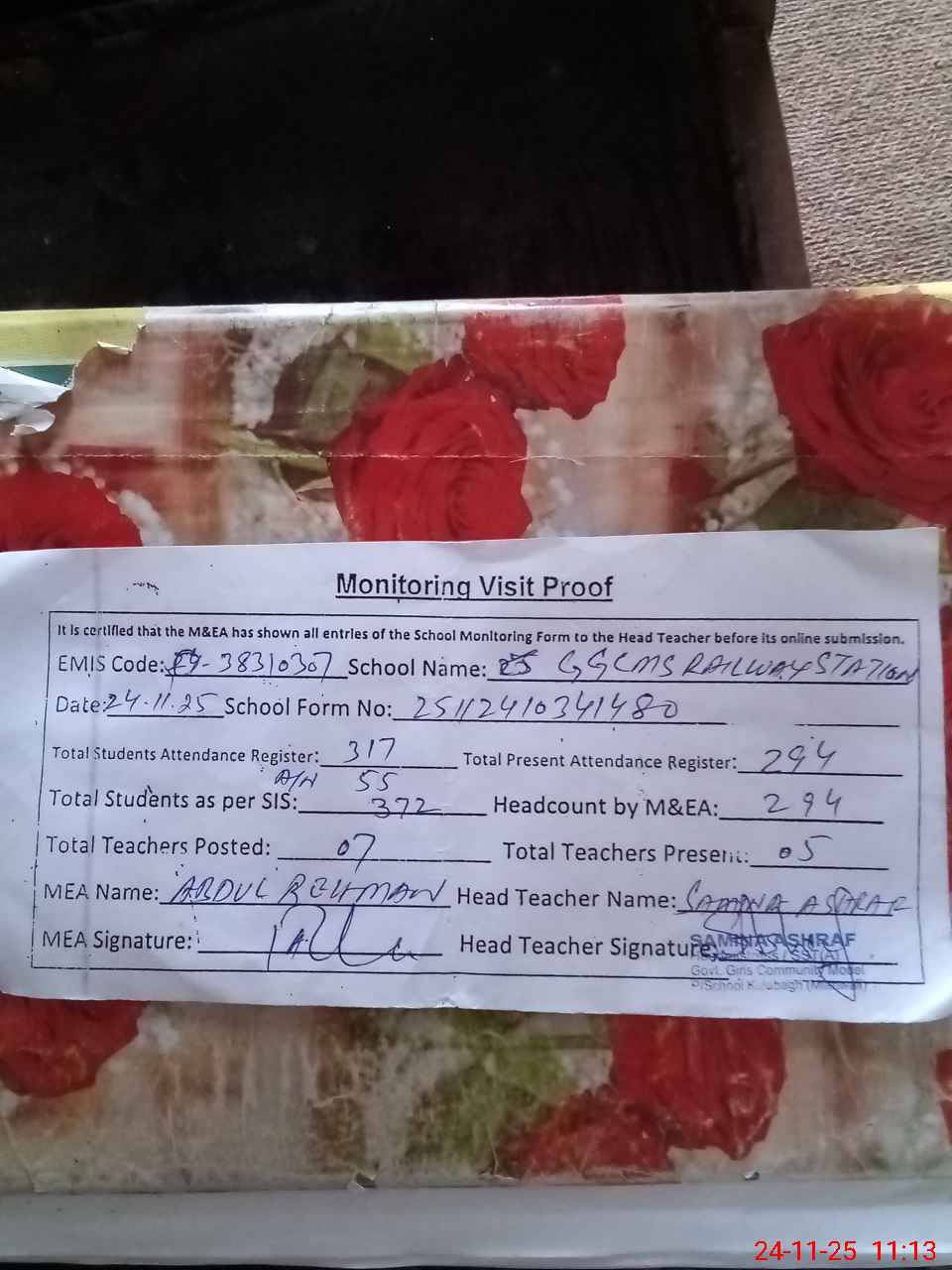 | EMIS Code: 38310307 | Name of School: GGCMS RAILWAY STATION KALA BAGH | |||