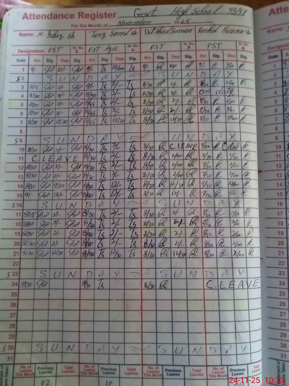| CNIC | Full Name | Designation | R/C | Absence During Last Calender Month |