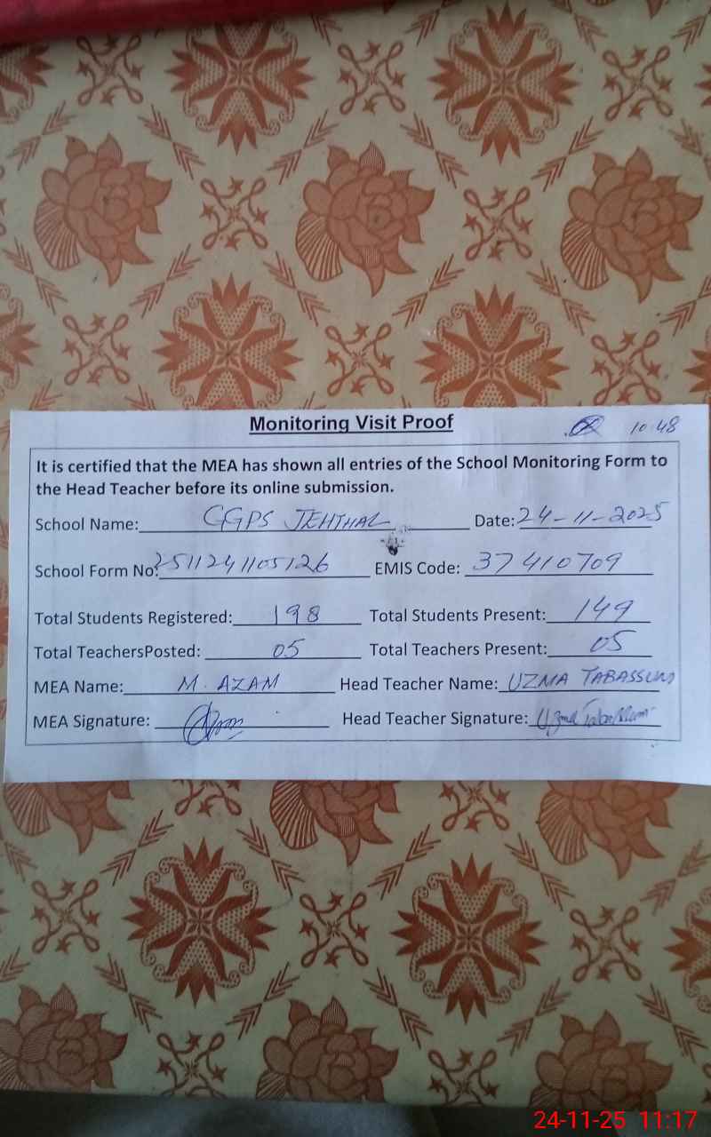 | EMIS Code: 37410709 | Name of School: GGPS JHETHAL | |||