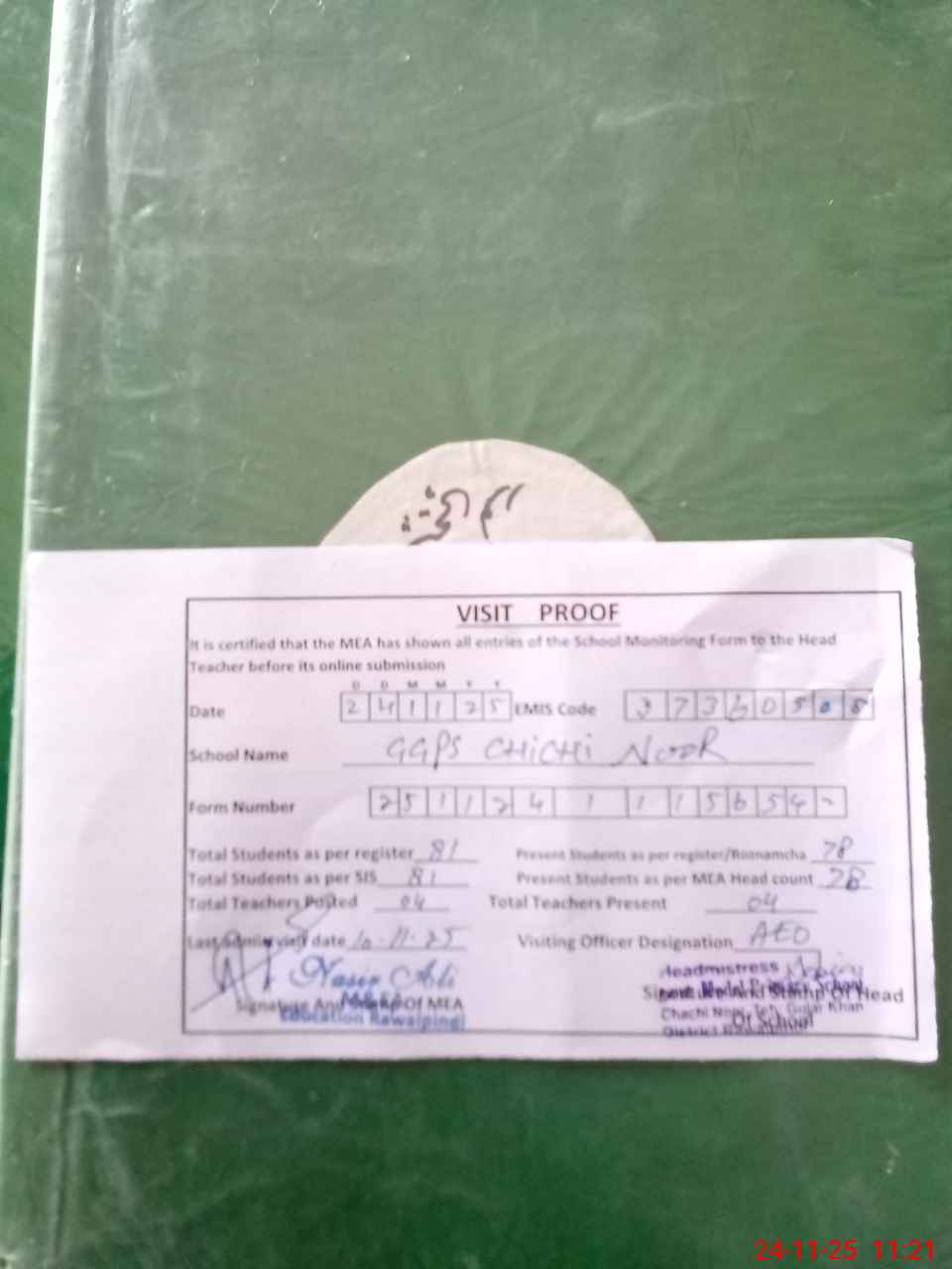 | EMIS Code: 37360508 | Name of School: GGPS CHECHI NOOR | |||