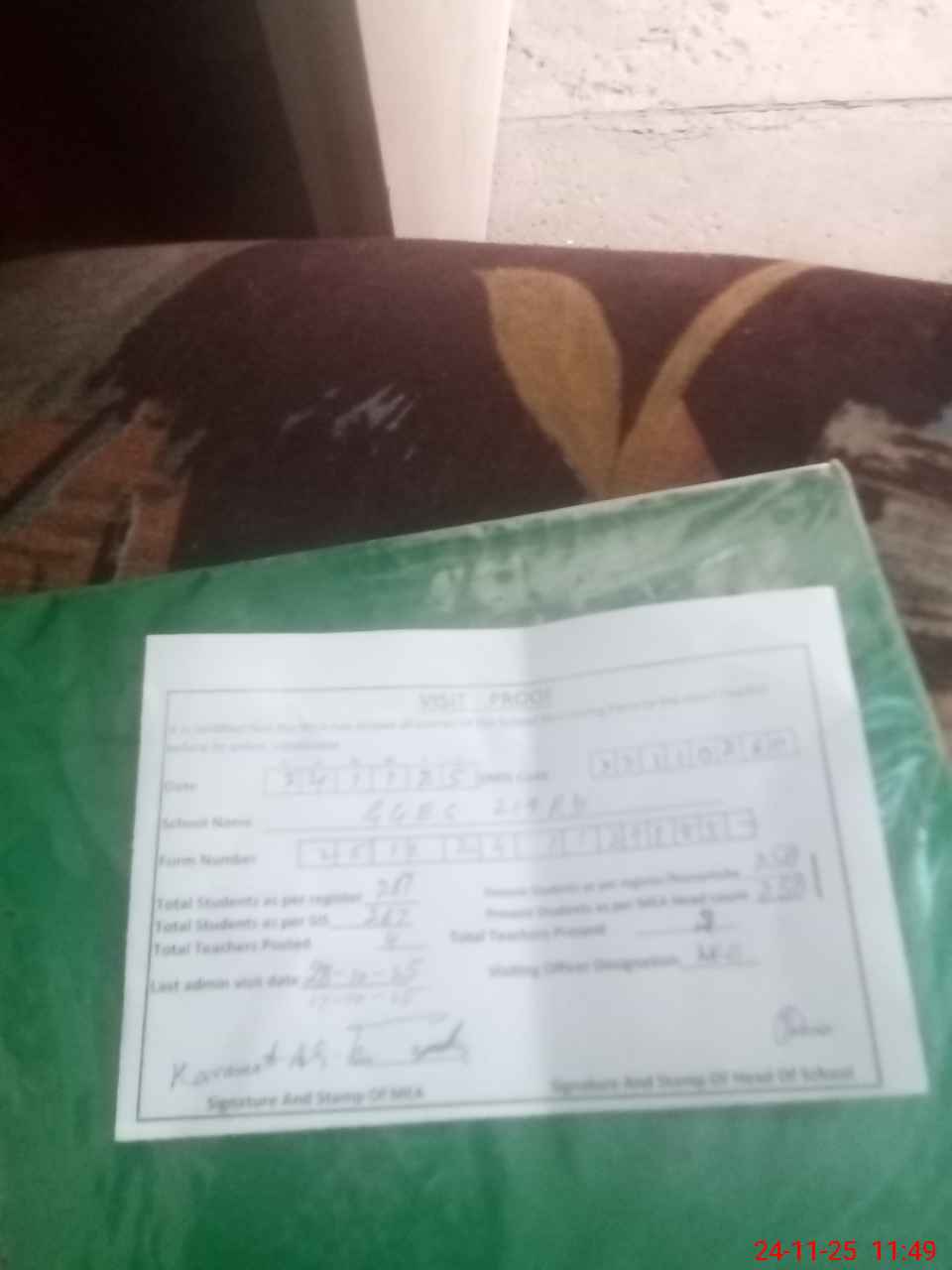 | Attendance Register | Head Teacher | MEA with School | Visit Proof |