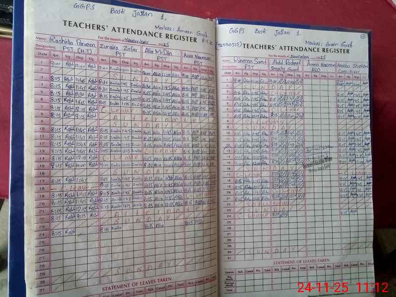 | CNIC | Full Name | Designation | R/C | Absence During Last Calender Month |