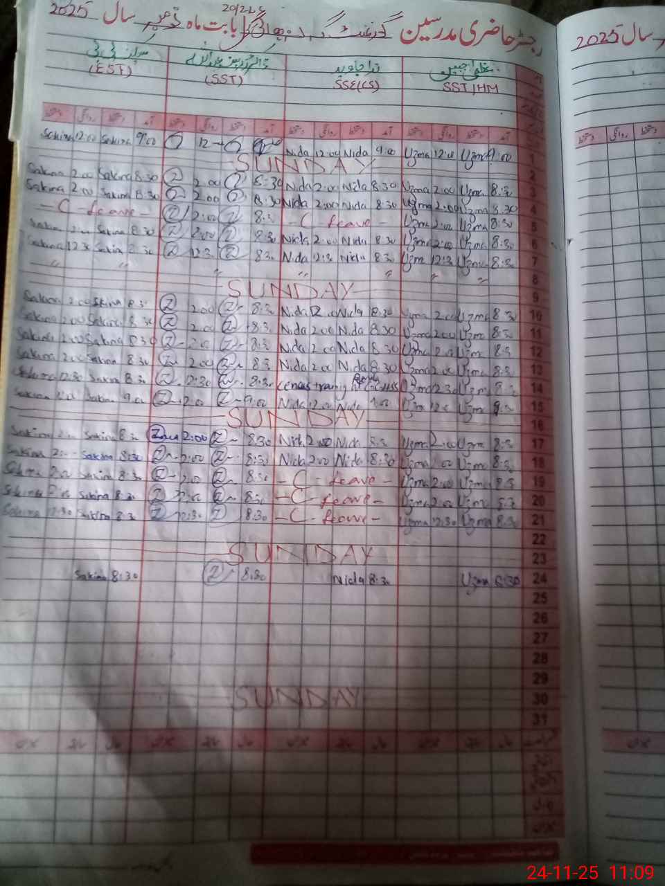 | CNIC | Full Name | Designation | R/C | Absence During Last Calender Month |