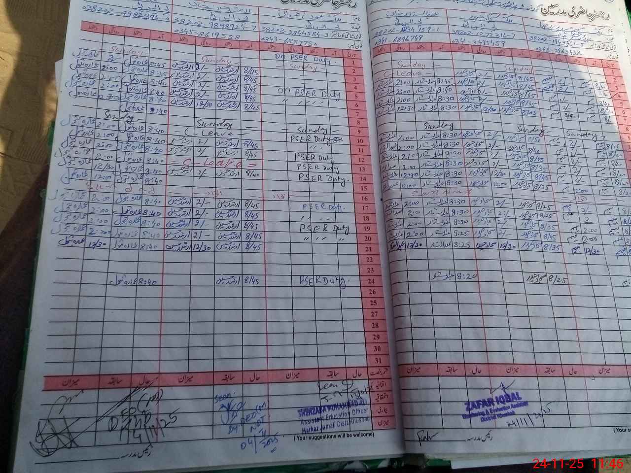 | CNIC | Full Name | Designation | R/C | Absence During Last Calender Month |