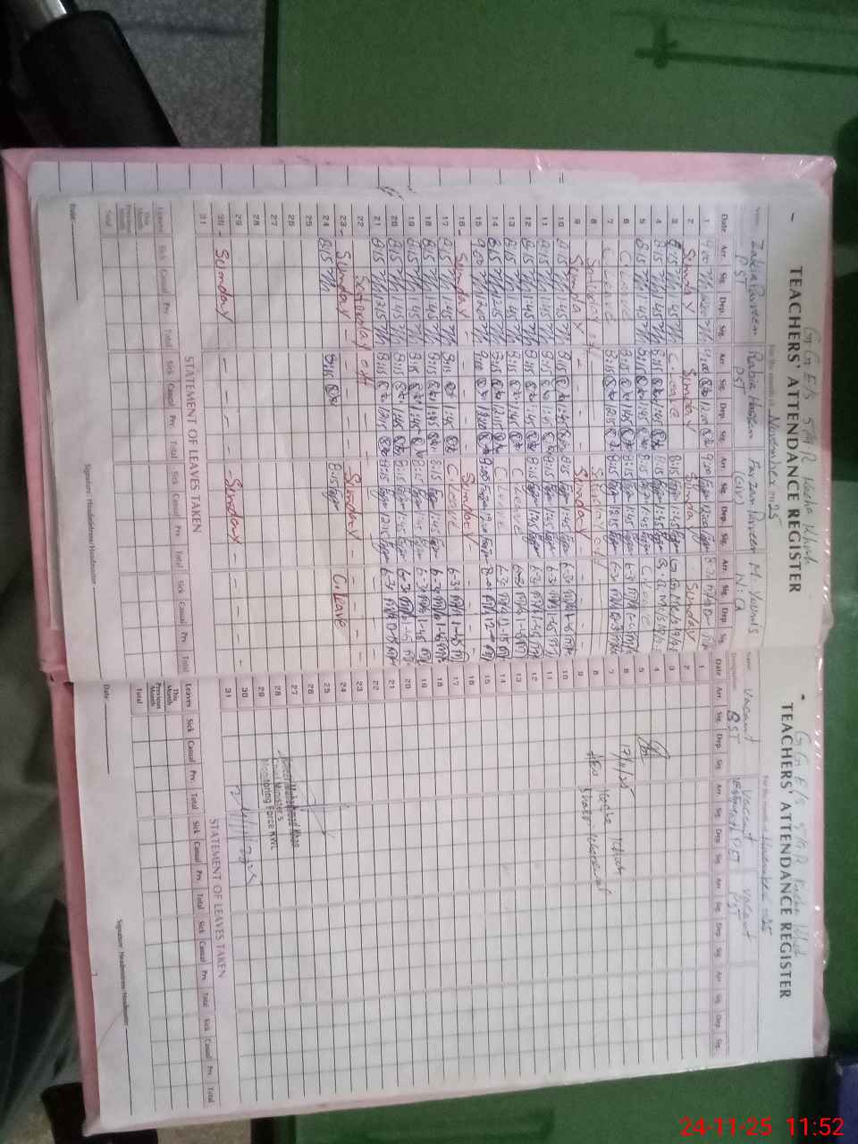 | CNIC | Full Name | Designation | R/C | Absence During Last Calender Month |