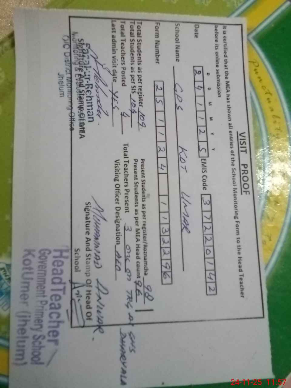 | EMIS Code: 37220142 | Name of School: GPS KOT UMER | |||