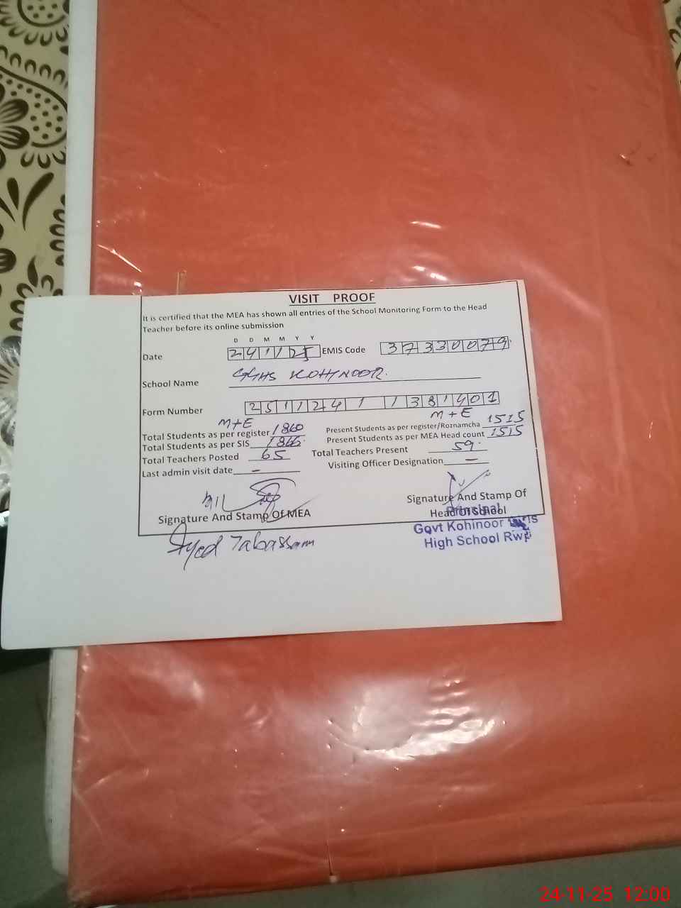| EMIS Code: 37330079 | Name of School: GGHS KOH-I-NOOR | |||