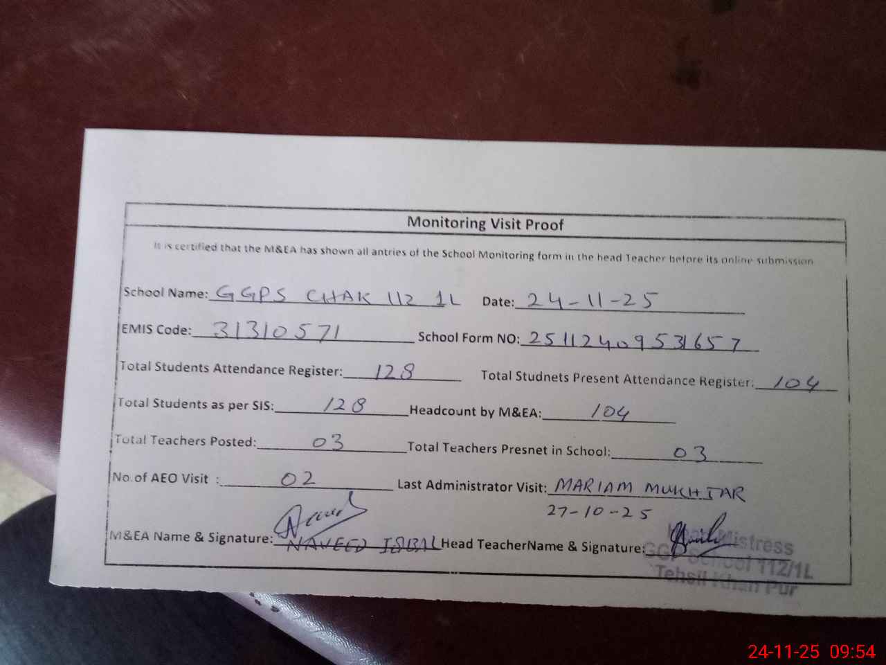 | EMIS Code: 31310571 | Name of School: GGPS CHAK NO.112/1-L | |||