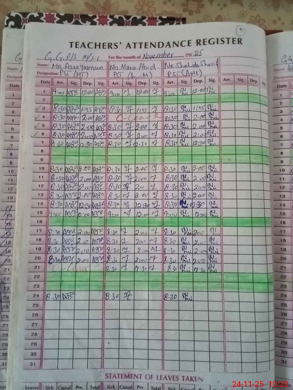 | Leave | Duty | Absent | Maternity | Medical | Ex- Pak |