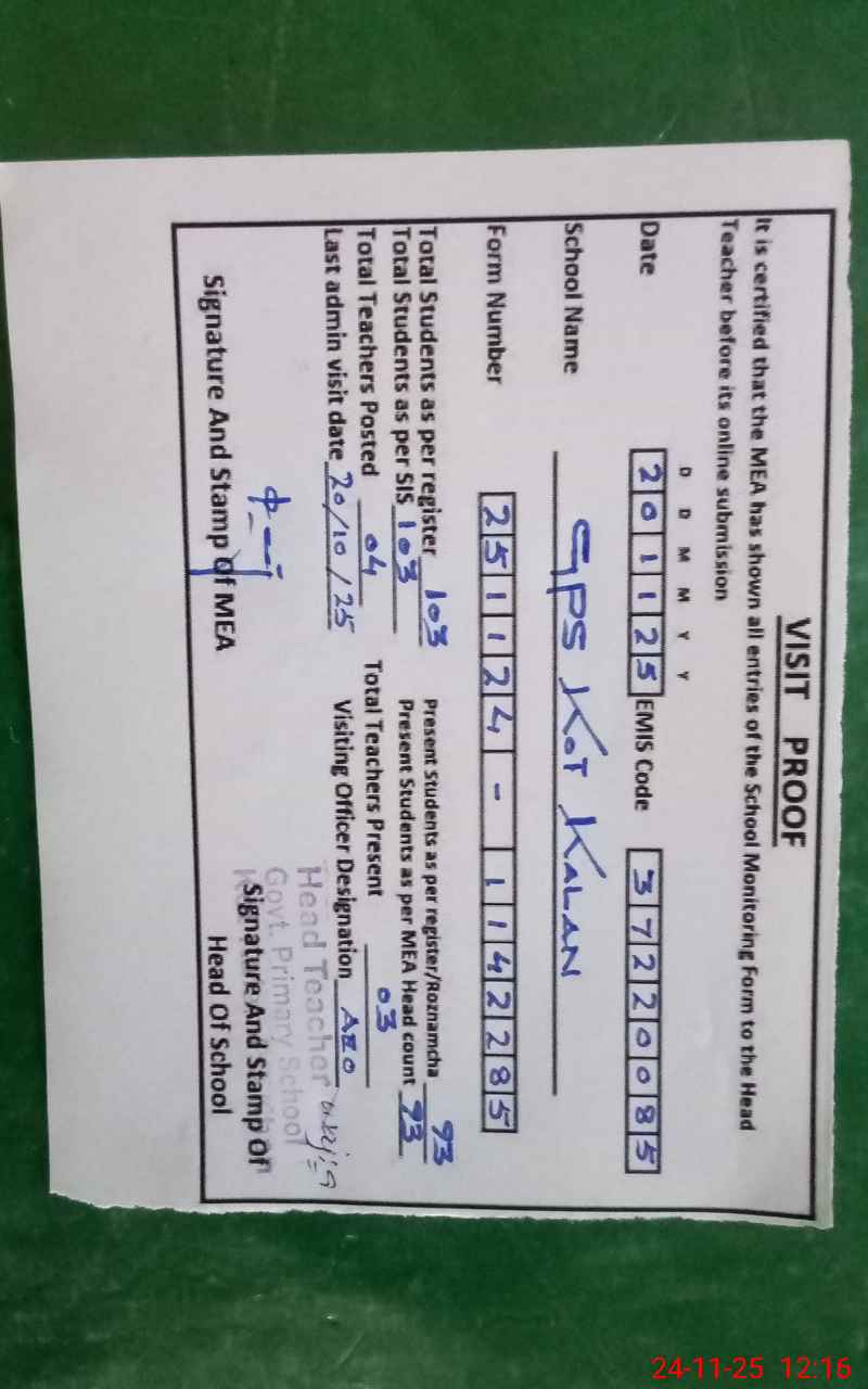 | EMIS Code: 37220085 | Name of School: GPS KOT KALAN | |||