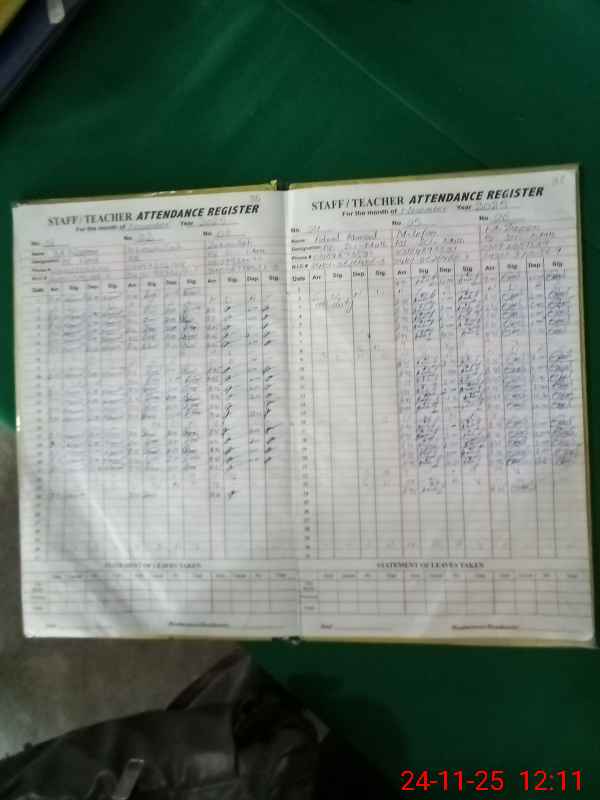 | Remarks (Use Separate Page if Required): Attendance of teaching staff on SIS Software is updated but students attendance on SIS Software is not updated Adeel Ahmad PST is on PSER Duty w e f 01 November 2025 Data as per provided by School Staff and found during physical visit | |||||