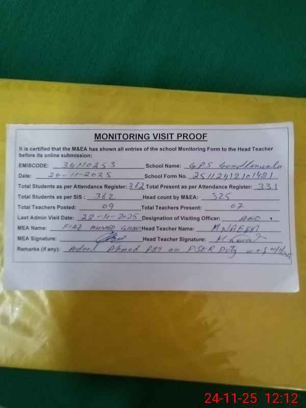 | EMIS Code: 34110253 | Name of School: GPS GONDLAN WALA | |||