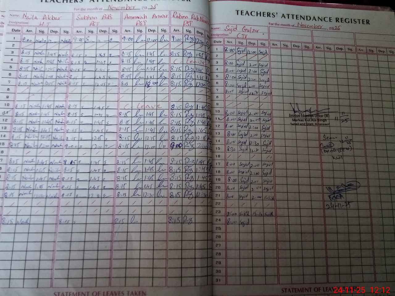 | CNIC | Full Name | Designation | R/C | Absence During Last Calender Month |