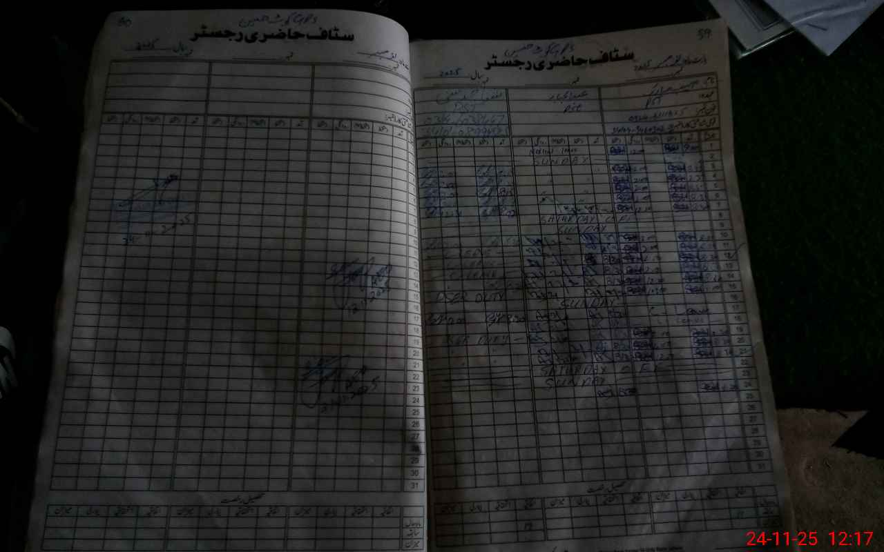 | CNIC | Full Name | Designation | R/C | Absence During Last Calender Month |