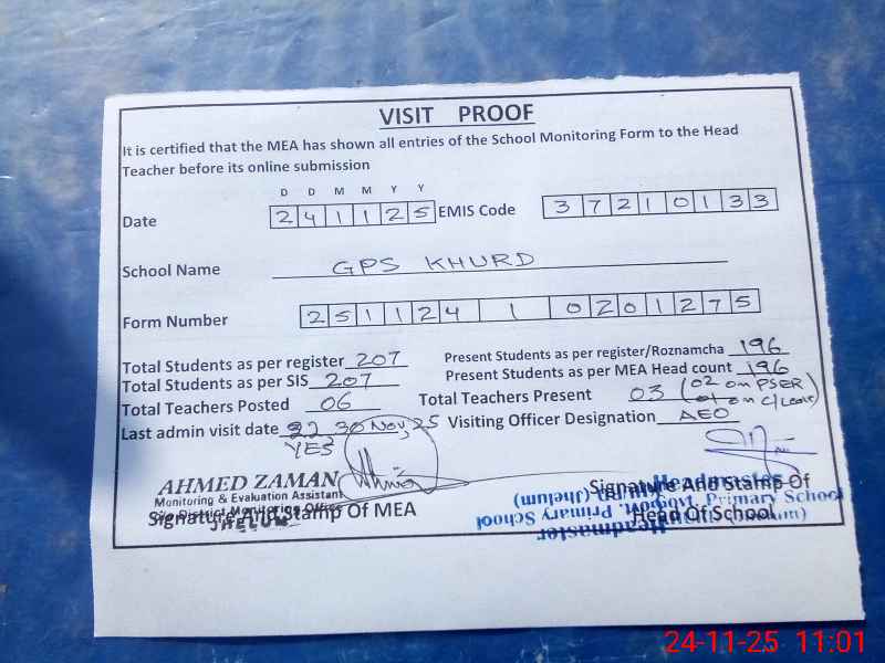 | EMIS Code: 37210133 | Name of School: GPS KHURD | |||