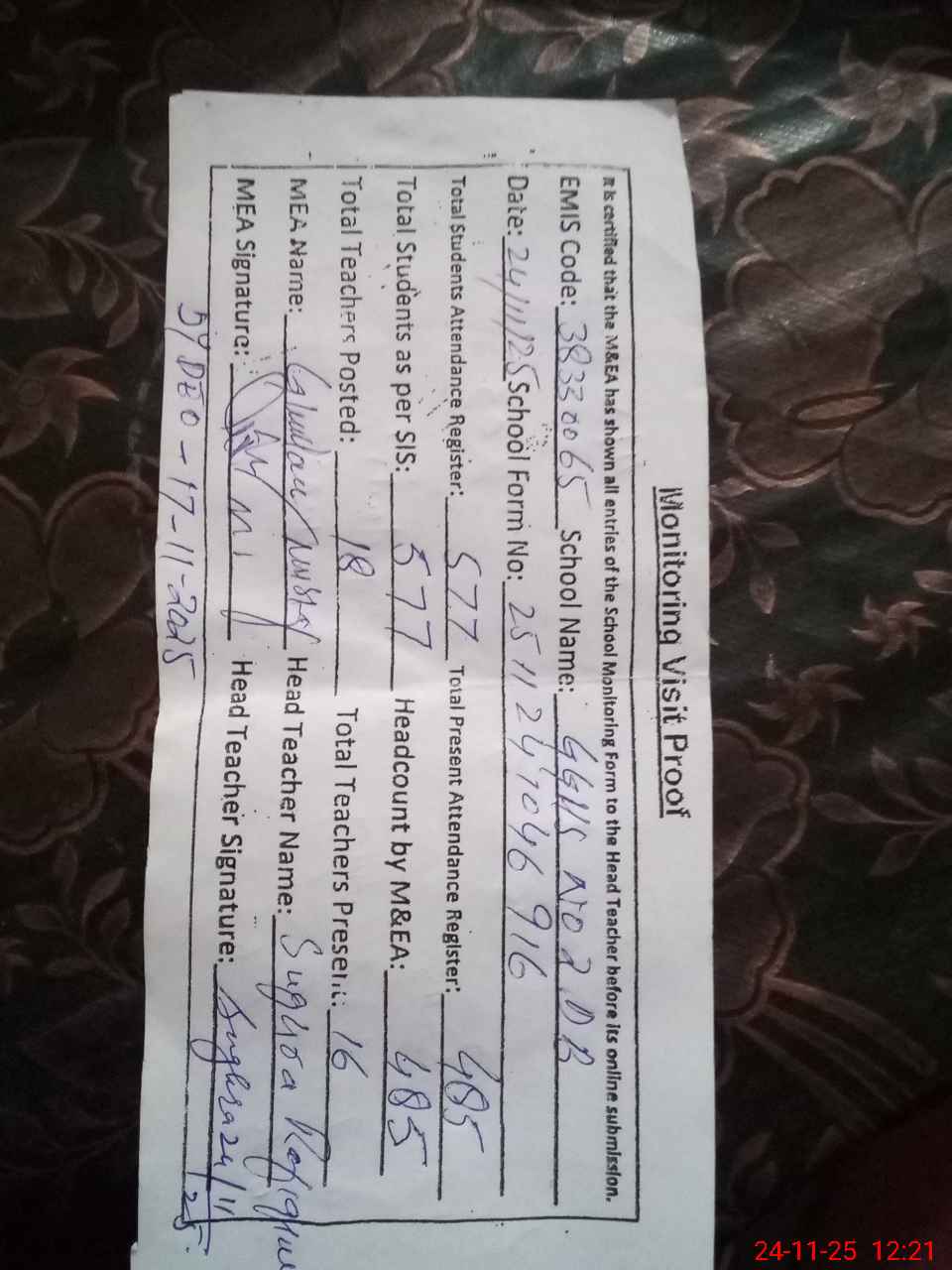 | EMIS Code: 38330065 | Name of School: GGHS CHAK NO. 2 DB | |||