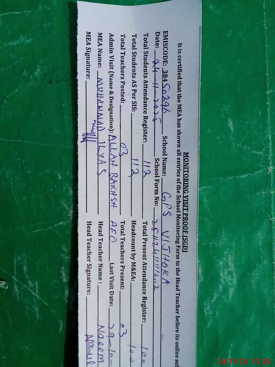 | EMIS Code: 38450296 | Name of School: GPS VIJHOKA | |||