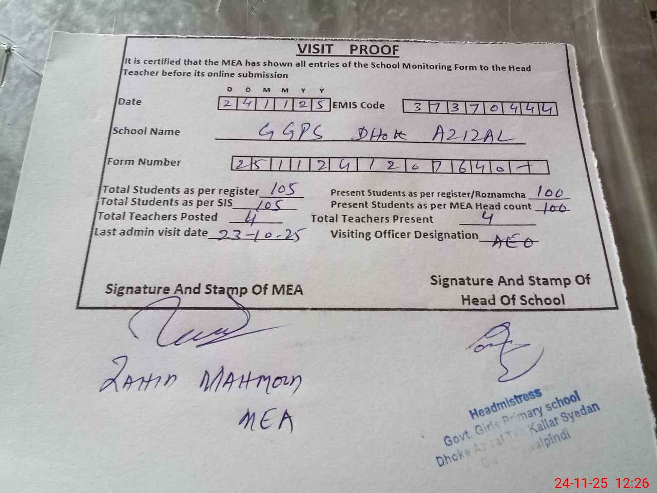 | EMIS Code: 37370444 | Name of School: GGPS DHOK AZIZAL | |||