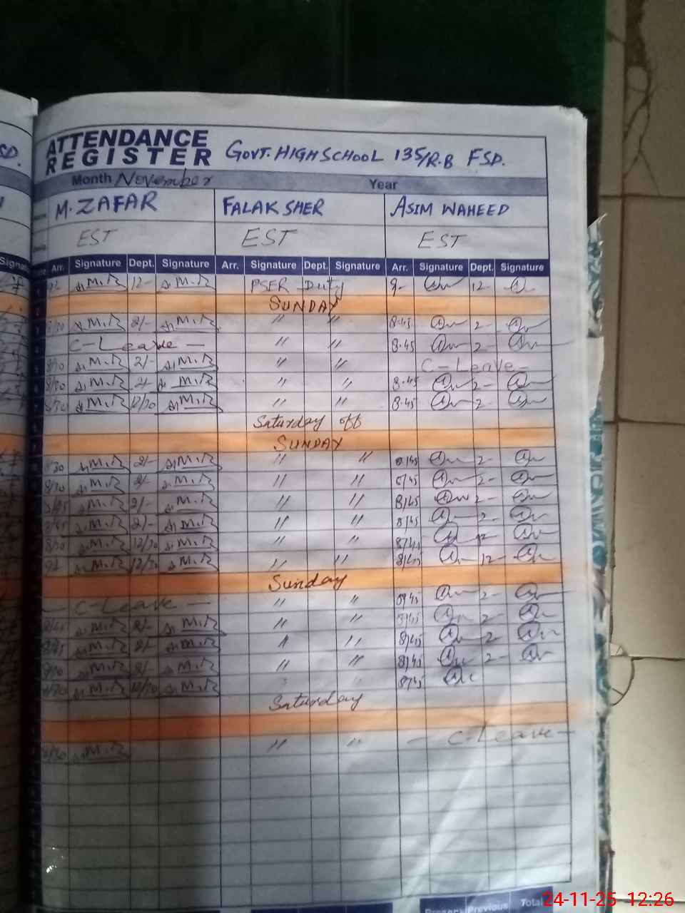 | CNIC | Full Name | Designation | R/C | Absence During Last Calender Month |